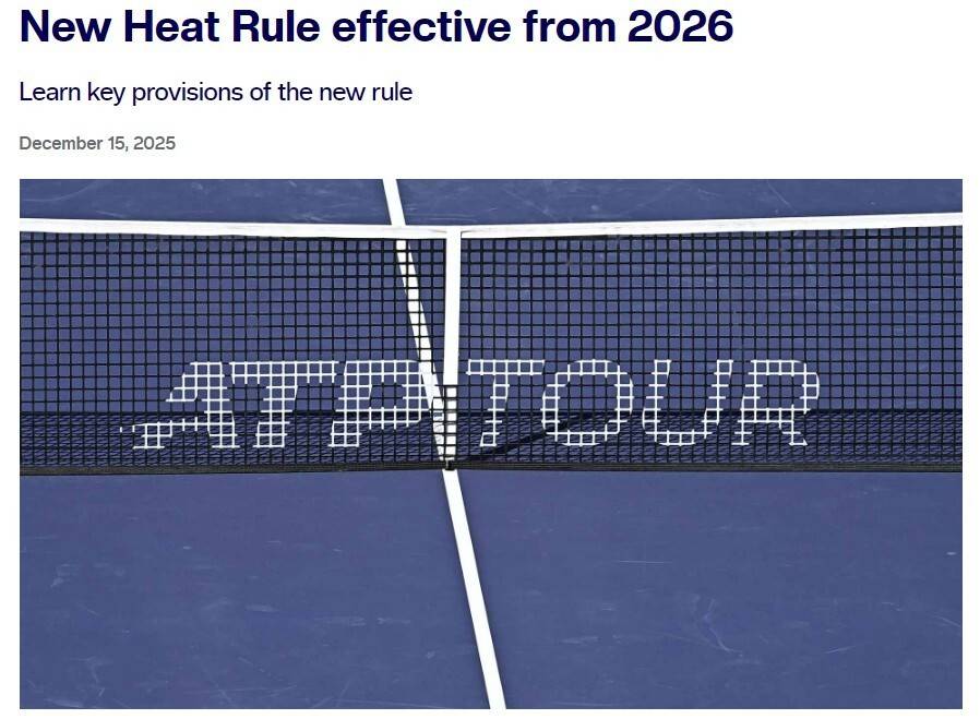 为了应对高温天气下对运动员的影响,ATP官方在本周一(12月15日)发布了一则新规,新规将于2026赛季开始全面实施。