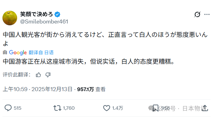 12月13号,日本社交媒体上一场关于“游客素质"的讨论,走向了始料未及的方向。
