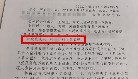 从2003年起,郭白某任河南省辉县南寨镇孙石窑村支部书记长达14年之久。他称在职期间累计为村委会垫资80余万元,为讨要这笔欠款,他将村委会告上了法院。