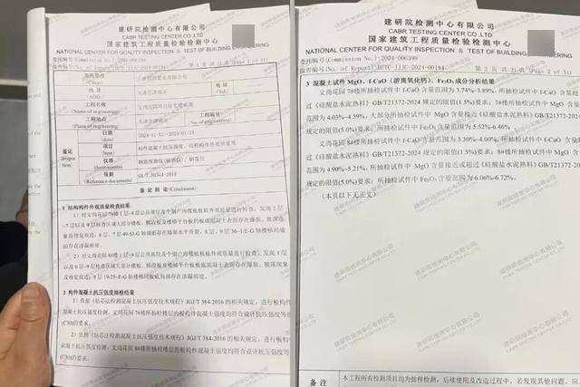 文尚花园的混凝土中,就检测出了超过标准的游离氧化钙。