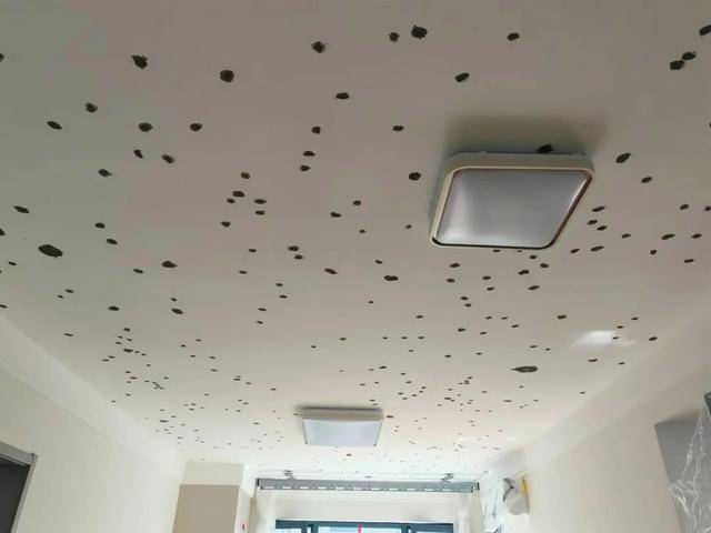 等鼓包被抠掉后,林斐丽家的客厅全是密密麻麻的小黑点,他们将此戏称为“星空顶”。
