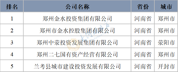 表3 河南省区县级政府投融资平台排名情况(列示前5名)