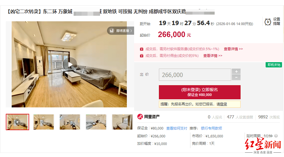 此前红星新闻报道,今年11月,邻近成都万象城商圈的一处住宅线上拍卖(详见:《》)。
