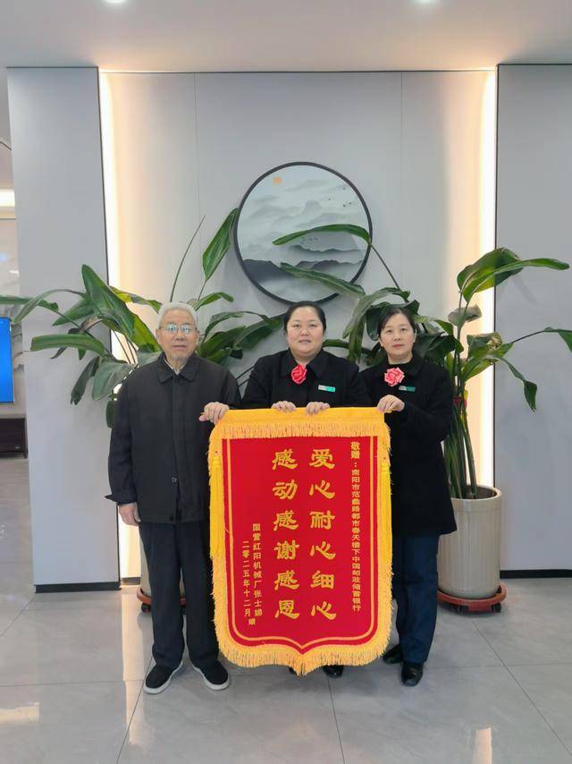 鲜红的锦旗映着冬日暖阳,真挚的感谢暖透人心。12月16日,南阳市中心城区80多岁的退休职工张先生,专程来到宛城区邮政分公司范蠡路营业所,将一面印着“爱心耐心细心 感动感谢感恩”的锦旗,郑重地送到负责人杨征手中,紧紧握着她的手再三说道:“你们比亲人还亲,这份情我记一辈子!”