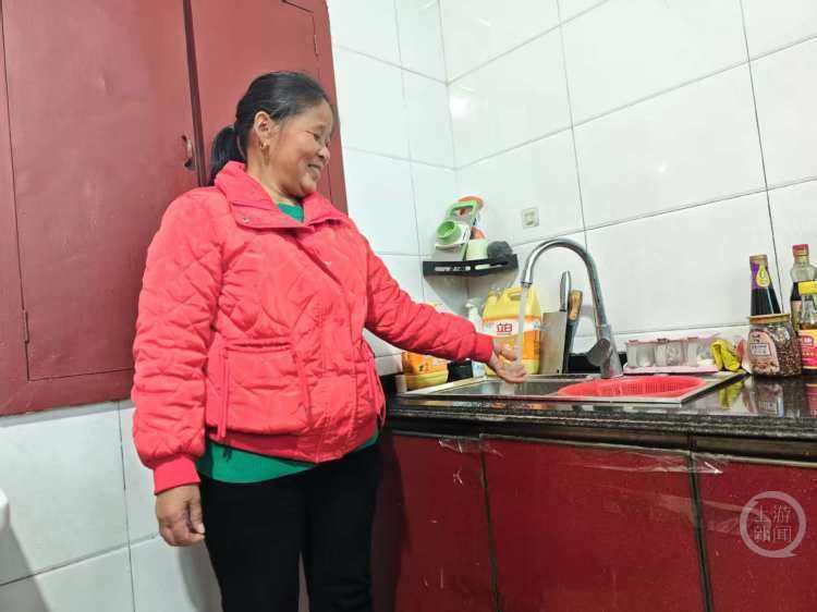 村民陈翠余展示家中新安装的自来水。上游新闻记者 崔涛 摄