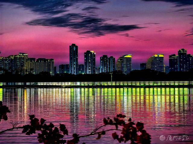 昨日傍晚,晚霞为天空“涂上”绛紫绯红的颜料。(厦门日报拍客 爱萍 摄)