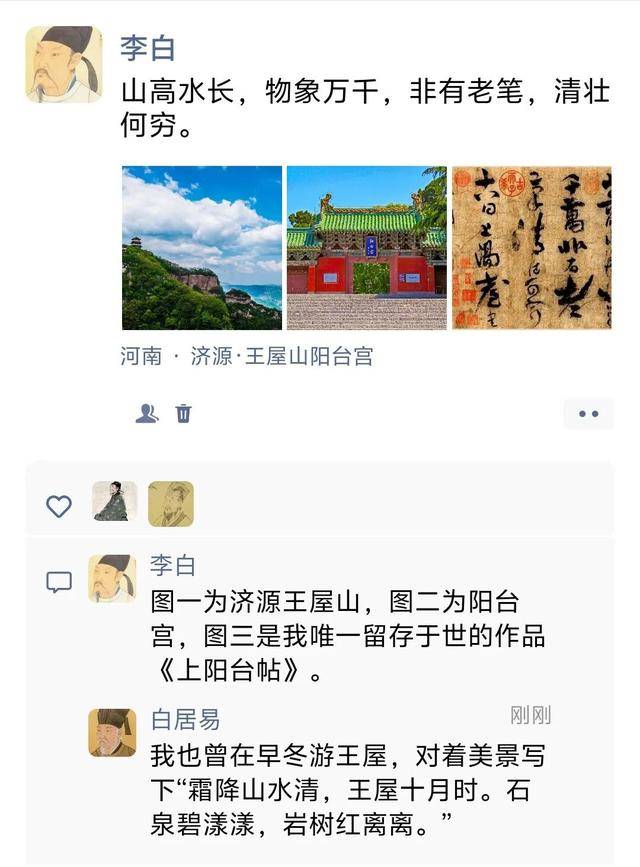 至阳台宫后,方知司马承祯已然仙逝,故李白有感而作《上阳台贴》。王屋山山势雄伟,云雾缭绕。站在山顶俯瞰群山连绵、云海翻腾,仿佛置身于仙境之中。