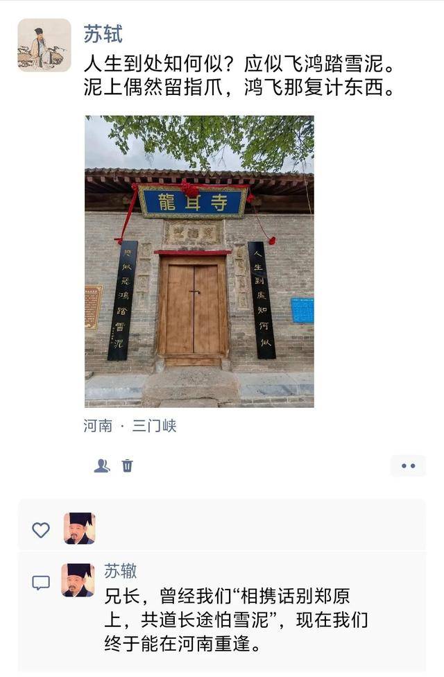 苏轼途经渑池(今三门峡)时,重逢昔日留宿的古寺,却见接待他的老僧已经去世,当年题诗的墙壁早已斑驳,他写下“人生到处知何似?应似飞鸿踏雪泥。”