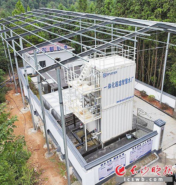 在海拔600米左右的宁乡市小型供水工程沩山乡水厂内,作为当地农村饮水保障突出问题专项整治工作的任务之一,崭新的一体化过滤消毒设备于今年投入使用。