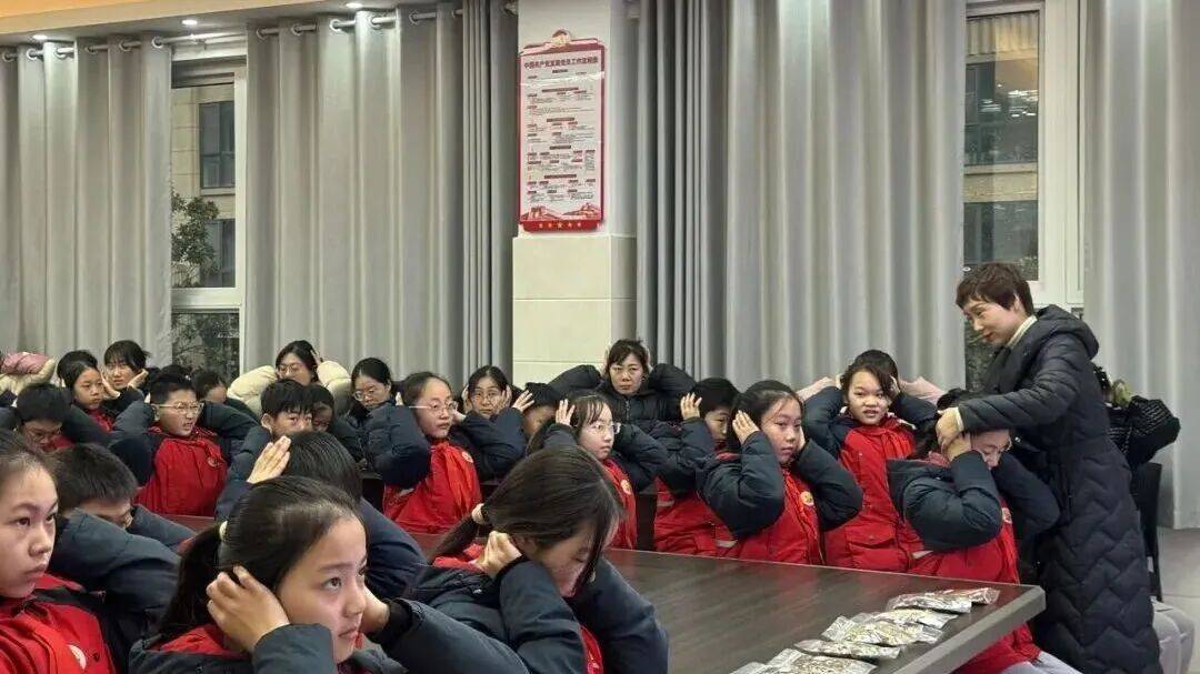 活动伊始,医生以南阳道地药材为引,讲述“八大宛药”的故事,她从药性、气味到功效,结合实物与图片,让学生们直观感受到中医药源于自然、用于生活的智慧,也让传承千年的“宛药文化”在孩子们心中悄然生根。随后,医生通过人体模型与互动演示,教同学们认识人体十二大经络与眼部重要穴位,一边讲解,一边引导孩子们亲手触摸、准确定位。活动最后,医师团队带领全体师生一起学习了颈椎训练操,大家纷纷起身跟练,感受中医“治未病”的日常保健理念。