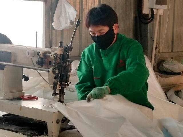 12月17日,笔者走进尹集镇梁庄村吨包加工厂,机器轰鸣声此起彼伏,工人们指尖翻飞,娴熟地赶制着一批批吨包订单,车间内一派繁忙景象。