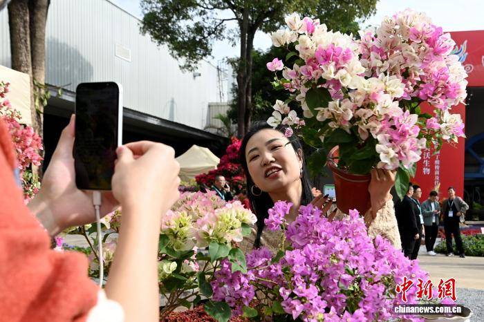 图为户外展区的三角梅色彩鲜艳,成为一道亮丽的风景线。中新社记者 张金川 摄