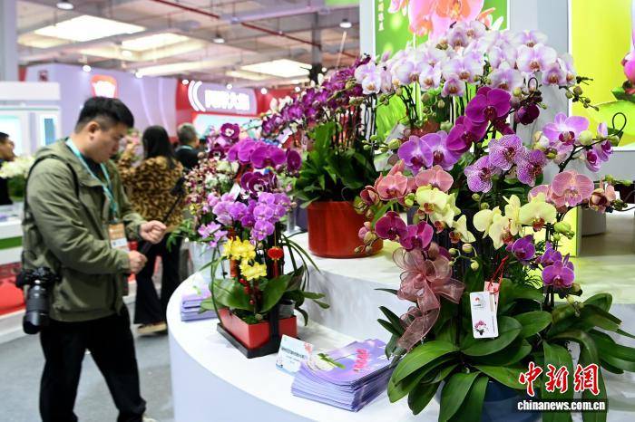 图为摄影爱好者在蝴蝶兰盆景前拍照。中新社记者 张金川 摄
