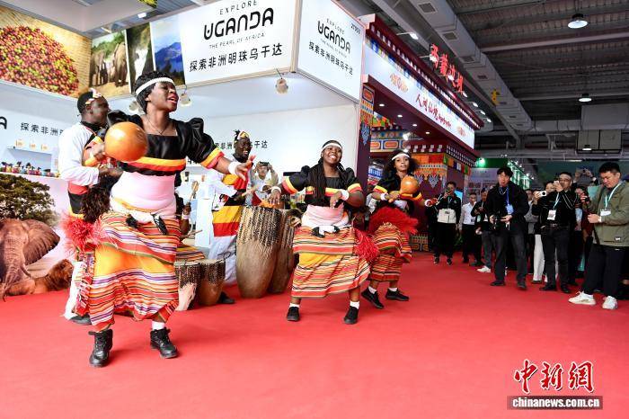 图为境外展位前的表演吸引民众驻足观看。中新社记者 张金川 摄