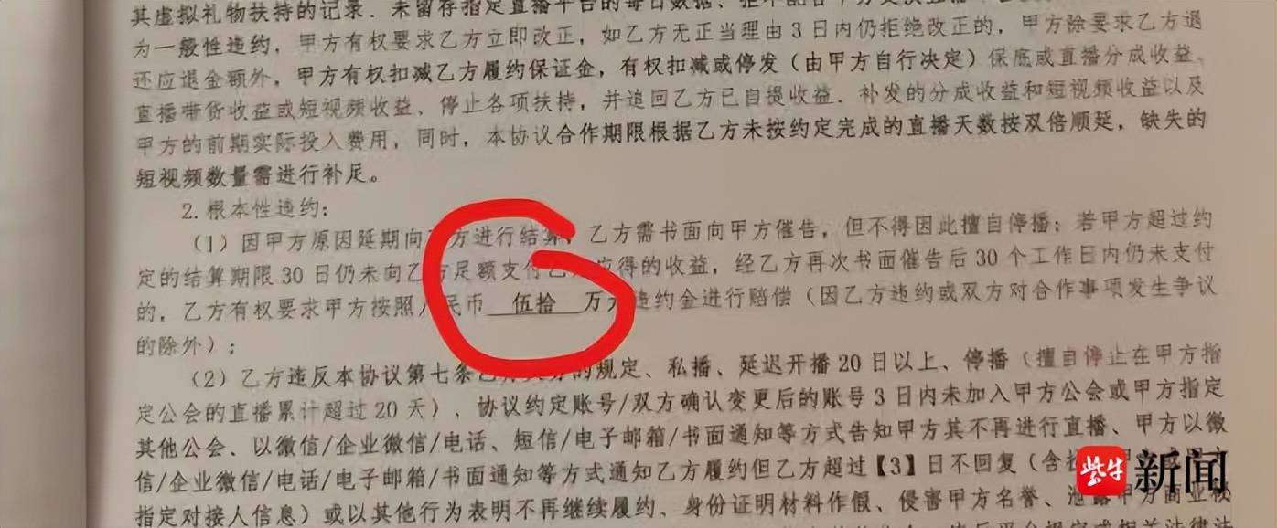 小雨不同意,公司就威胁要起诉她。这时,她才第一次认真审视那份入职时签的厚厚“直播合作协议”。当时她只看了分成和底薪方面的内容,根本没注意其他条款,这时看到合同上写着违约金50万元。小雨铁了心离开了这家公司,并且请了律师,做好了被起诉的准备,并且给想进入这个行业的人提出了一些忠告。