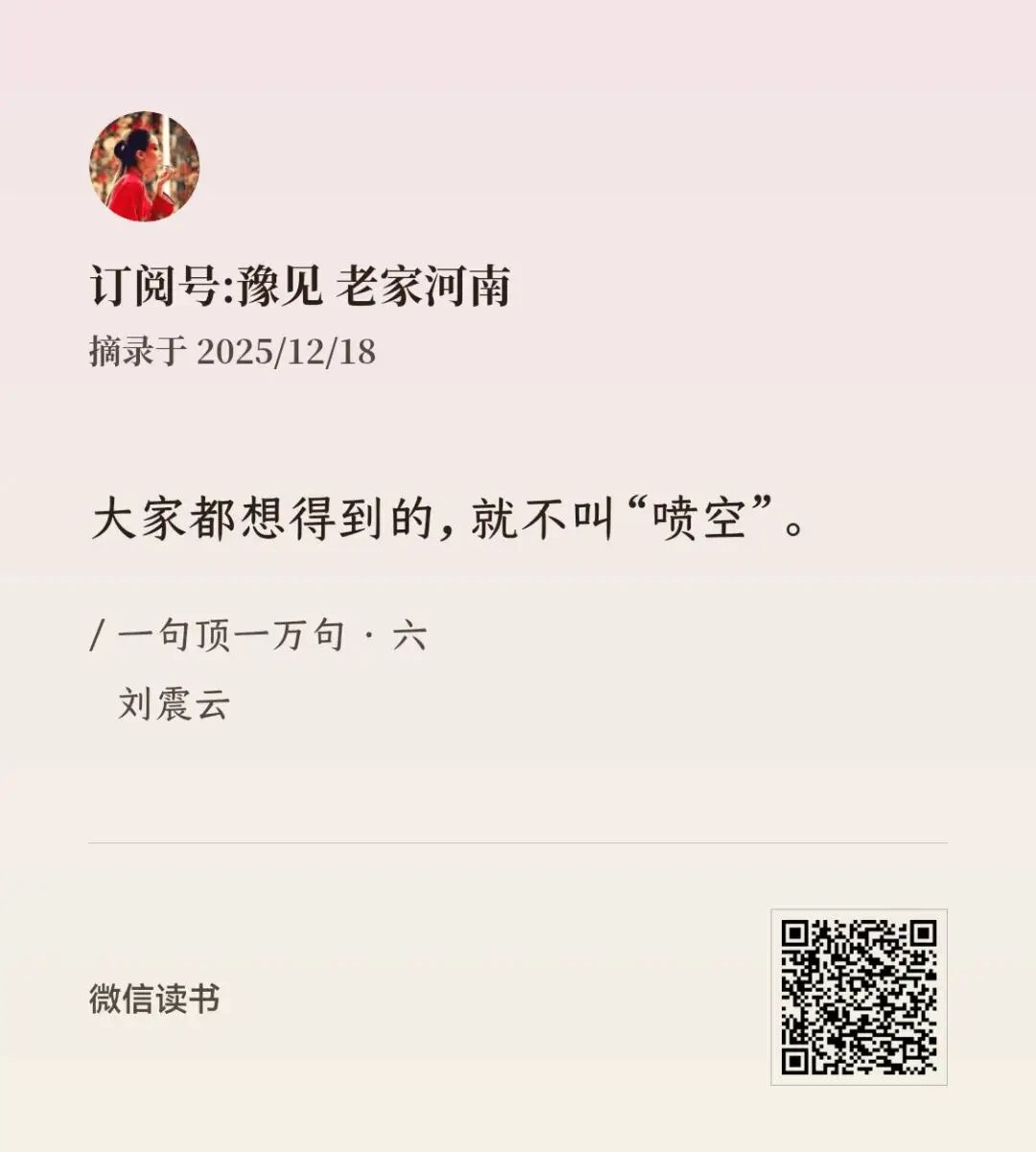 直到昨天看到刘震云的《一句顶一万句》,才发现“喷空儿”重在一个“空”字。
