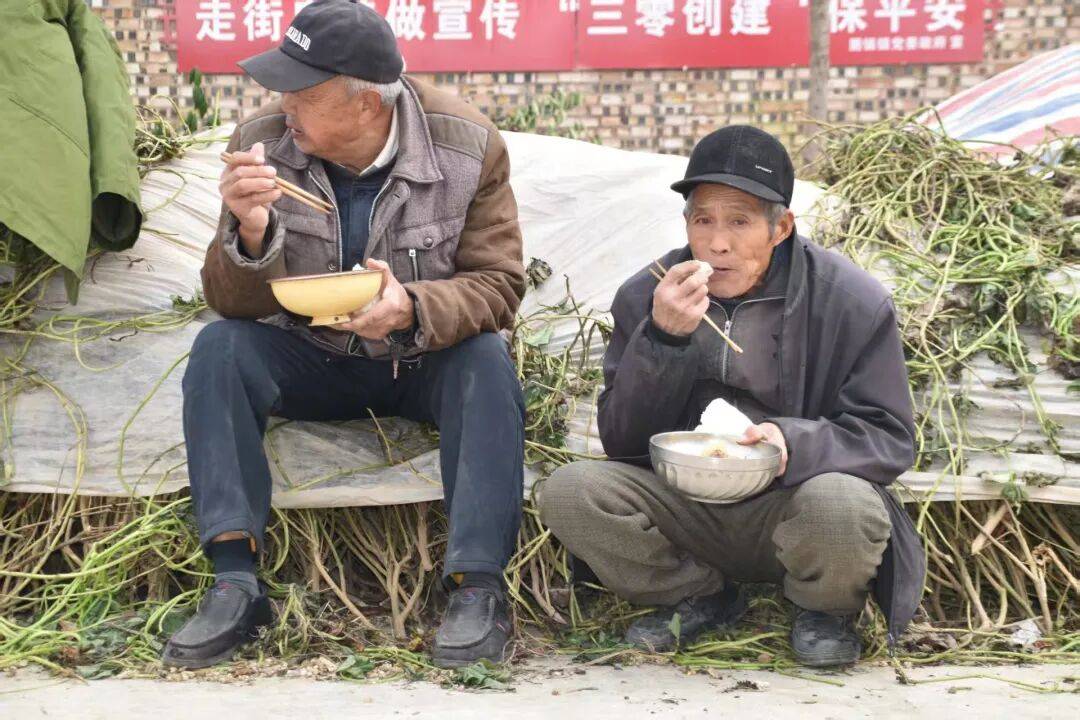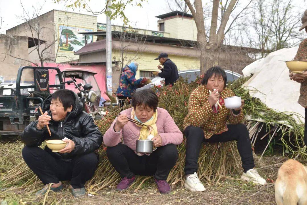 每到饭点,他们端着菜碗、汤碗、面条、扁食,有的还一手扣住俩馍,你一言我一语,边吃边喷空。