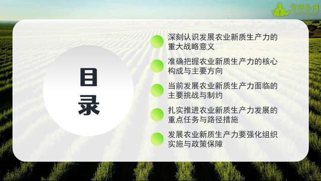 当前,以生物技术、信息技术、工程技术与农业深度融合为特征的农业科技革命方兴未艾,正深刻重塑全球农业生产方式与产业格局。本课件立足中国国情与发展阶段,深入阐释习近平总书记关于新质生产力重要论述在农业领域的核心要义与战略价值,系统解析农业新质生产力的内涵特征、核心构成与重大战略意义,前瞻性提出扎实推进农业新质生产力发展的重点任务与路径措施。