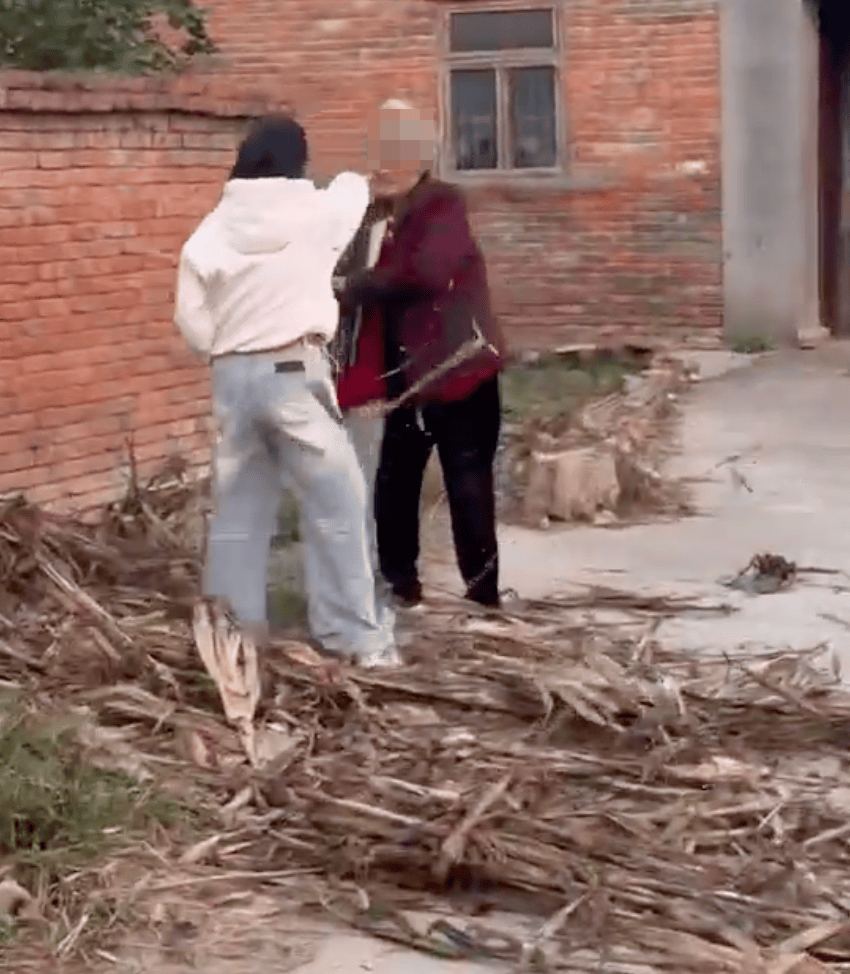 黄女士提供的两段冲突当天的现场视频显示,黄某芳与手持拐杖的赵某荣站在秸秆堆旁争吵,黄某芳不时来回踱步。随后,赵某荣开始用拐杖扒弄秸秆,黄某芳上前用手指指着赵某荣与她理论。很快,赵某荣用拐杖打向黄某芳的身体,两人开始扭打。