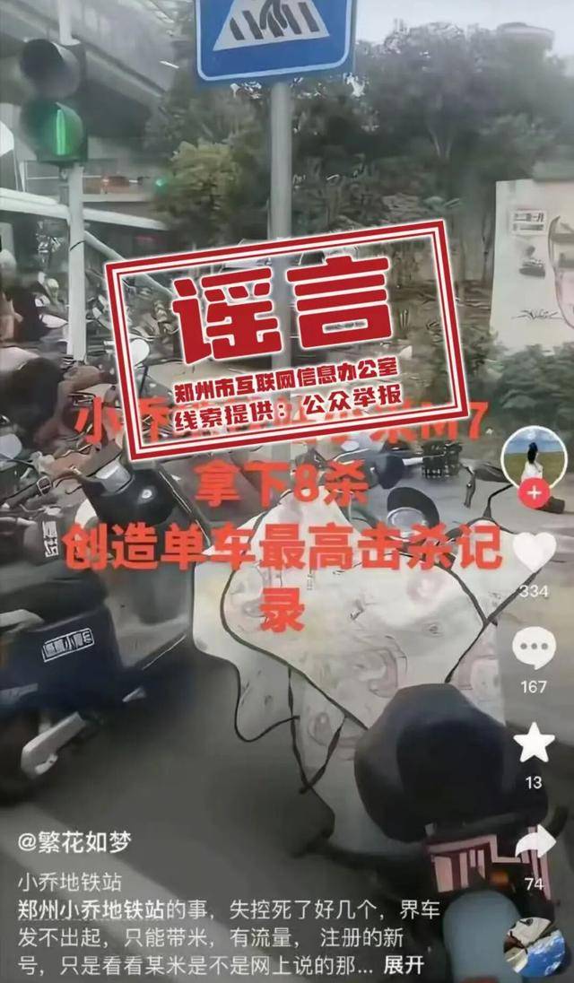 真相:11月5日,网络账号“繁花如梦”发布图文信息宣称“小乔地铁站某品牌汽车拿下8杀,创造单车最高击杀记录”,引发网民关注和讨论。经新郑市相关部门核实,该信息系不实信息。目前,公安部门已依法对信息发布者处以行政处罚。