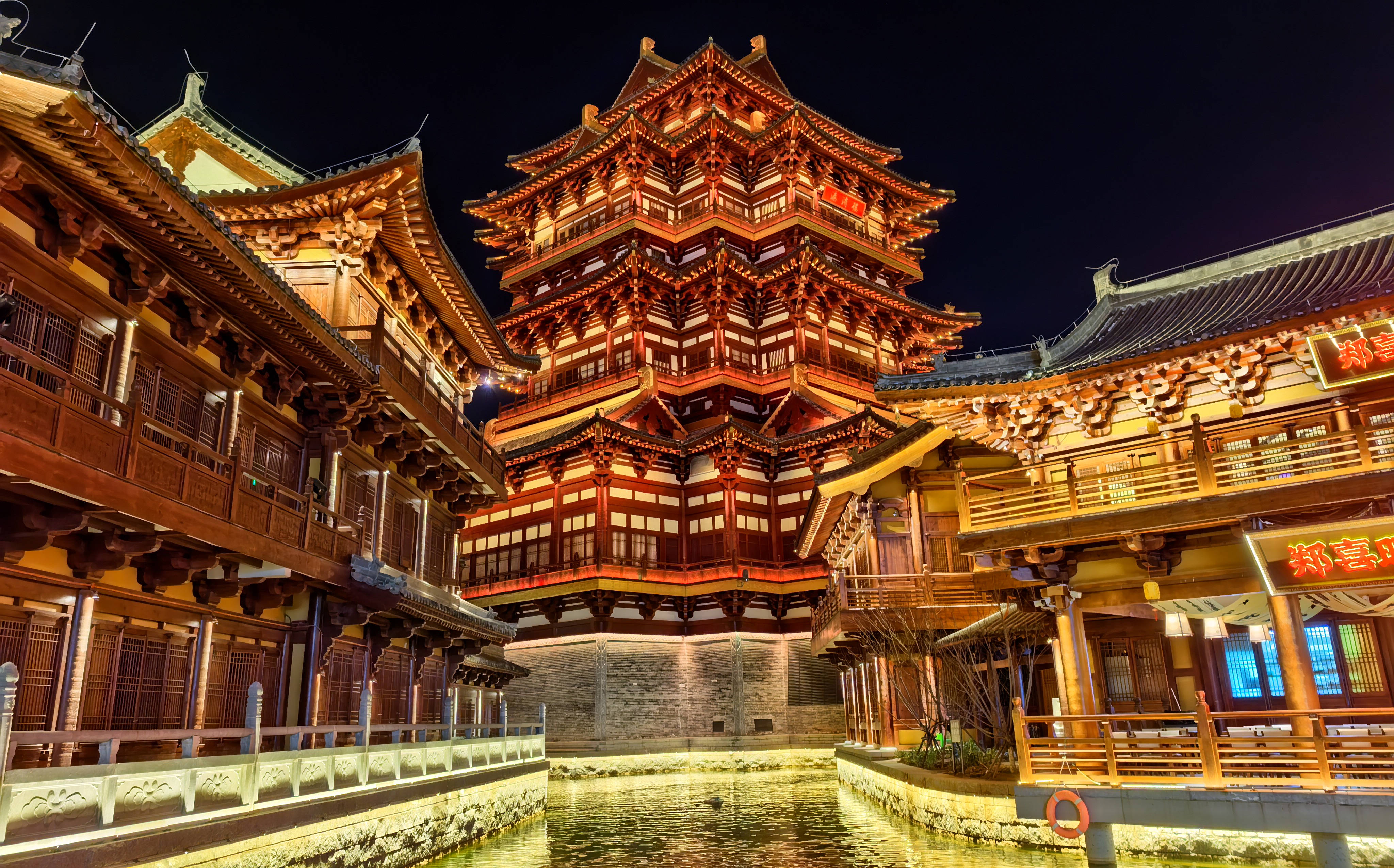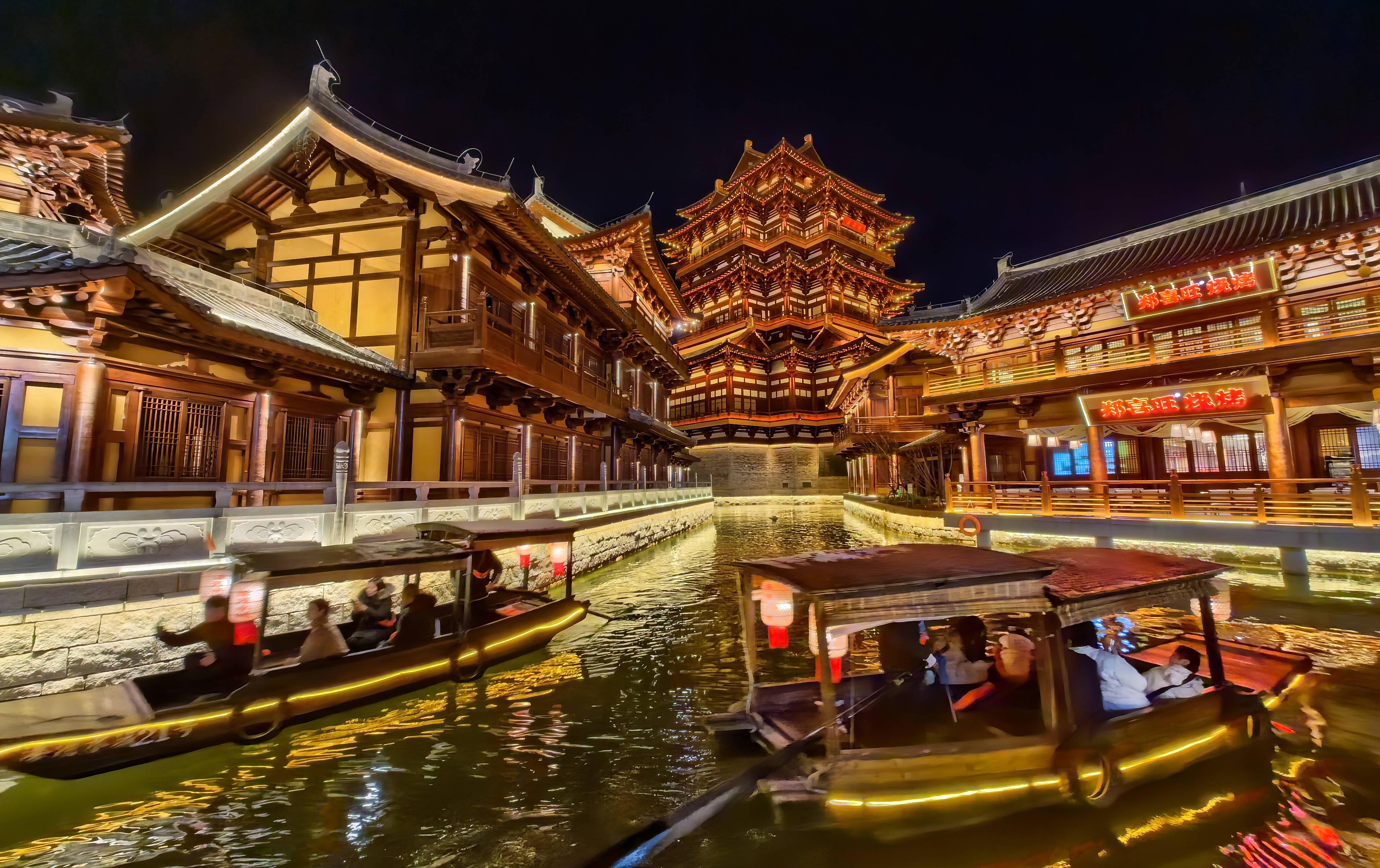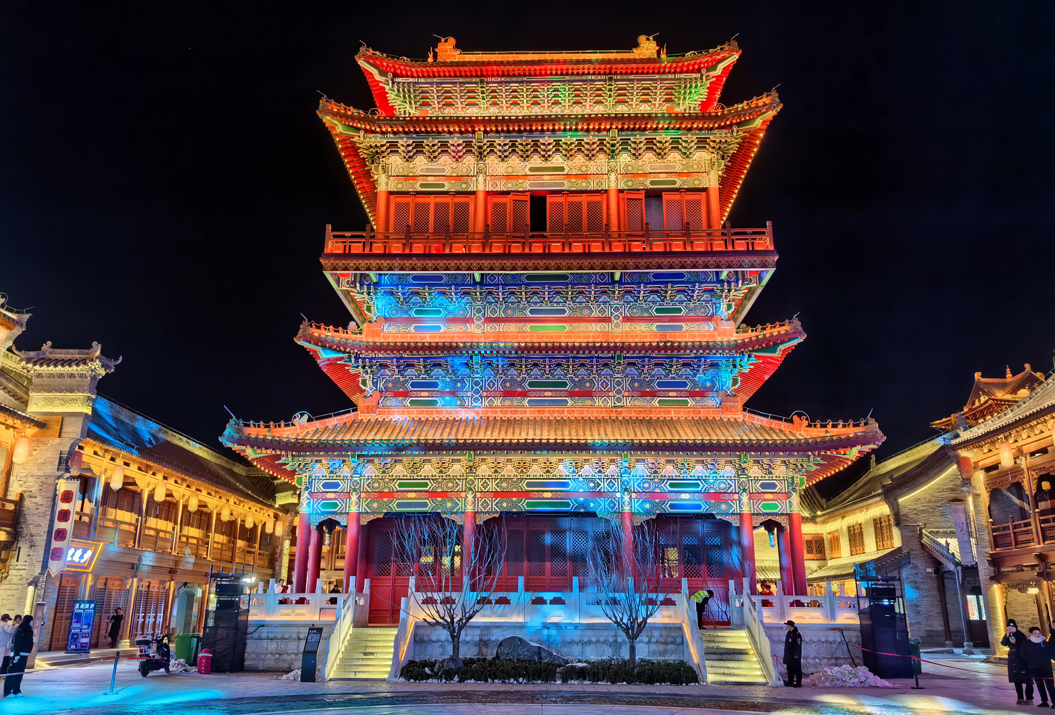 夜幕降临,位于河南省新密市的溱洧水城灯光璀璨,夜景迷人,吸引各地游客前来参观。