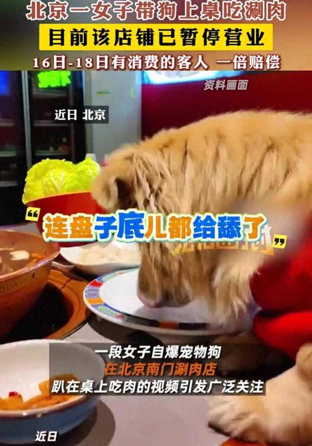 近日,北京。一段女子自爆宠物狗在南门涮肉店趴在桌上吃肉的视频引发关注。