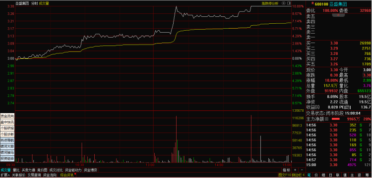 盘面看,96家农业股88家收涨,亚盛集团成板块唯一涨停股,并且也是该股8个月来首次涨停。神农种业、罗牛山、好当家、百洋股份、*ST万方涨幅大于5%。不过,平潭发展尾市15分钟从大涨5.85%变为下跌7.48%,可谓猝不及防。牧原股份尾市集合竞价也出现了闪崩。