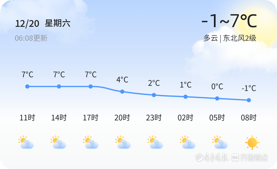 今日是2025年12月20日,星期六,农历十一月初一。临沂市今日天气多云,气温在-1℃至7℃之间,东北风2级,空气湿度为58%。当前空气质量指数为140,属于中度污染,建议市民外出时佩戴口罩,减少长时间户外活动。今日气温较低,市民出行需注意保暖,尤其是早晚温差较大,建议穿着防风保暖衣物。驾车出行时,注意路面可能因天气原因出现湿滑,需保持车距,减速慢行。此外,空气质量不佳,心脏病和呼吸系统疾病患者应尽量减少外出。未来三天,临沂市天气以晴到多云为主,气温将有小幅波动。明天天气晴朗,但气温较低,最低气温可达-3℃,市民需注意防寒保暖。后天多云转小雨,市民出行时建议携带雨具,以防天气突变。降雨期间,路面湿滑,驾车时请减速慢行,确保行车安全。本周后期,临沂市天气将以晴到多云为主,气温逐渐回升,但早晚温差较大,市民仍需注意保暖。建议市民根据天气变化及时增减衣物,避免感冒。同时,空气质量问题仍需关注,敏感人群应尽量减少外出活动。总体来看,未来一周临沂市天气以晴到多云为主,市民需注意保暖和防护,合理安排出行计划。