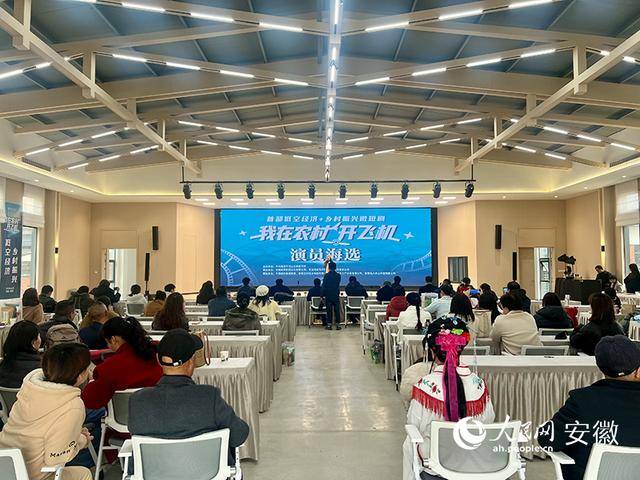 当天,45名来自安徽、江苏等地的“追梦人”,正根据微短剧《我在农村开飞机》剧组出的考题,在台上有板有眼地进行表演。