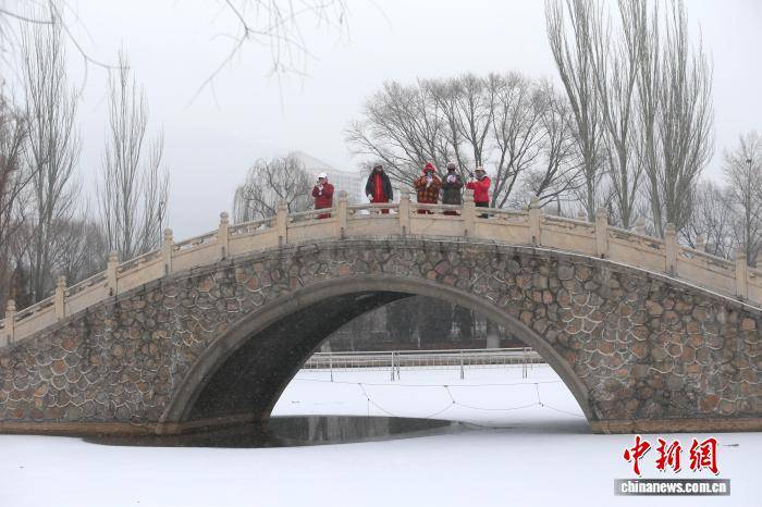 12月20日,青海西宁,市民在西宁市人民公园欣赏雪景。受冷空气影响,西宁市迎来降雪天气。青海省气象台于18日发布寒潮蓝色预警。 张忠苹 摄