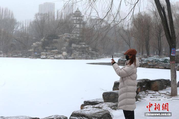 12月20日,青海西宁,市民在西宁市人民公园拍摄雪景。受冷空气影响,西宁市迎来降雪天气。青海省气象台于18日发布寒潮蓝色预警。 张忠苹 摄