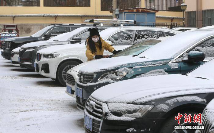 12月20日,青海西宁,市民清除汽车上的积雪。受冷空气影响,西宁市迎来降雪天气。青海省气象台于18日发布寒潮蓝色预警。 张忠苹 摄