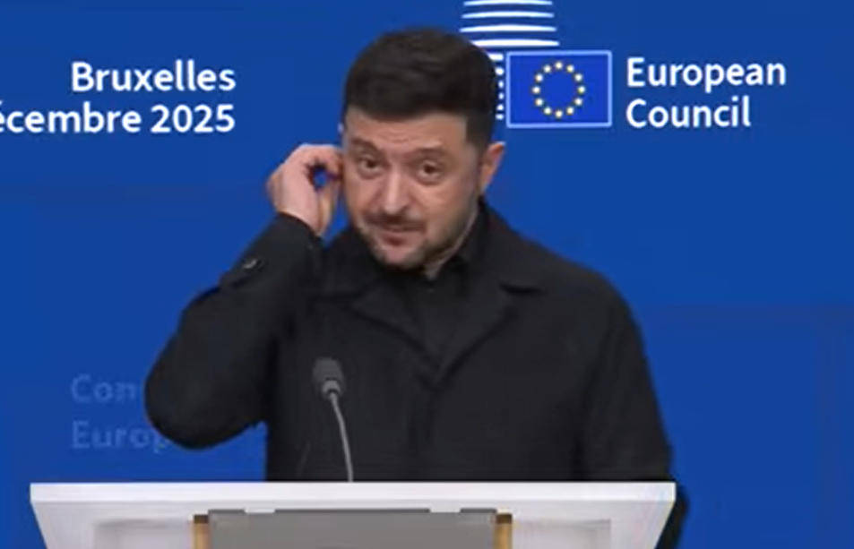 泽连斯基18日在布鲁塞尔出席新闻发布会视频截图