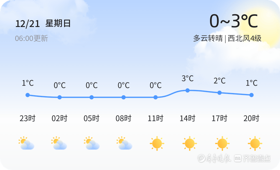 今天是2025年12月21日,星期日,农历十一月初二。青岛市今天天气多云转晴,气温在0℃至3℃之间,西北风4级,空气湿度为49%,PM2.5浓度为26,空气质量等级为优。今天是二十四节气中的冬至,标志着白昼最短、黑夜最长的一天。冬至是阴阳转换的重要节点,也是中国传统文化中重要的节日之一。市民应注意保暖,适当增加衣物,避免感冒。此外,今天青岛市发布了寒潮蓝色预警信号,部分地区可能出现低温和大风天气,市民出行时应特别注意防风保暖,确保安全。