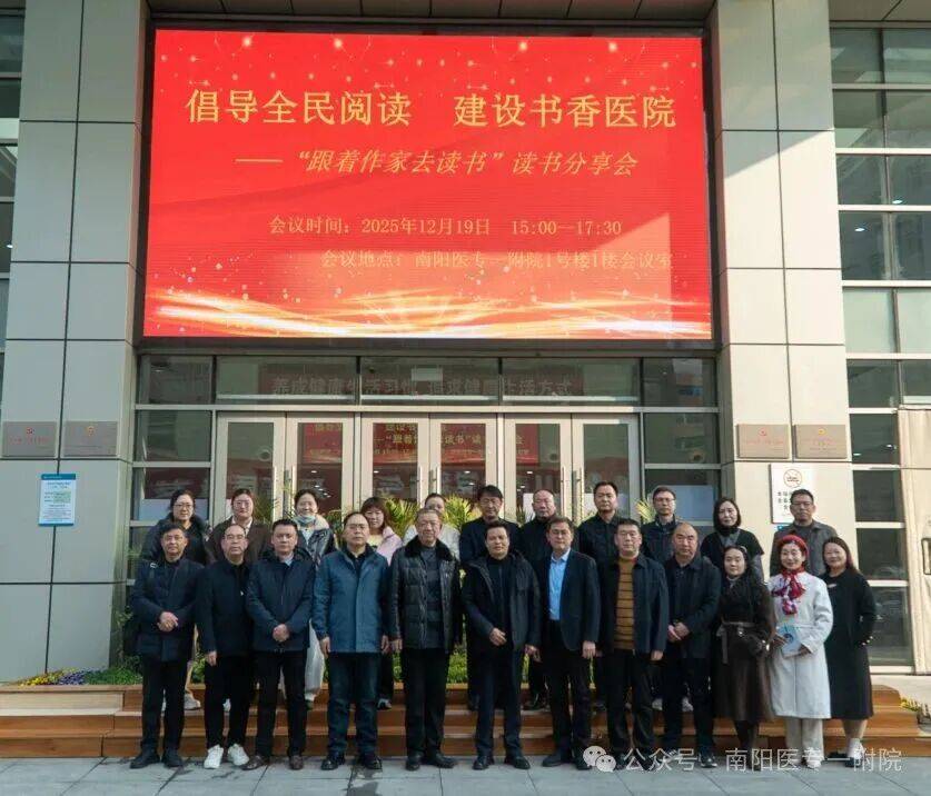 为深化医院文化建设、推进“书香医院”创建,2025年12月19日下午,南阳医专一附院成功举办“倡导全民阅读 建设书香医院——跟着作家去读书”主题读书分享会,以文为媒搭建交流平台,让书香浸润医疗服务、滋养医患心灵。中国作家协会会员、南阳市作协主席刁仁庆,南阳医专党委委员、副校长杜晓平,南阳二月河研究学会会长鲁钊,南阳医专团委书记董菡,南阳市读书协会会长董志国、党支部书记刘晓宇等嘉宾应邀出席,与医院医务人员共同沉浸书香氛围。