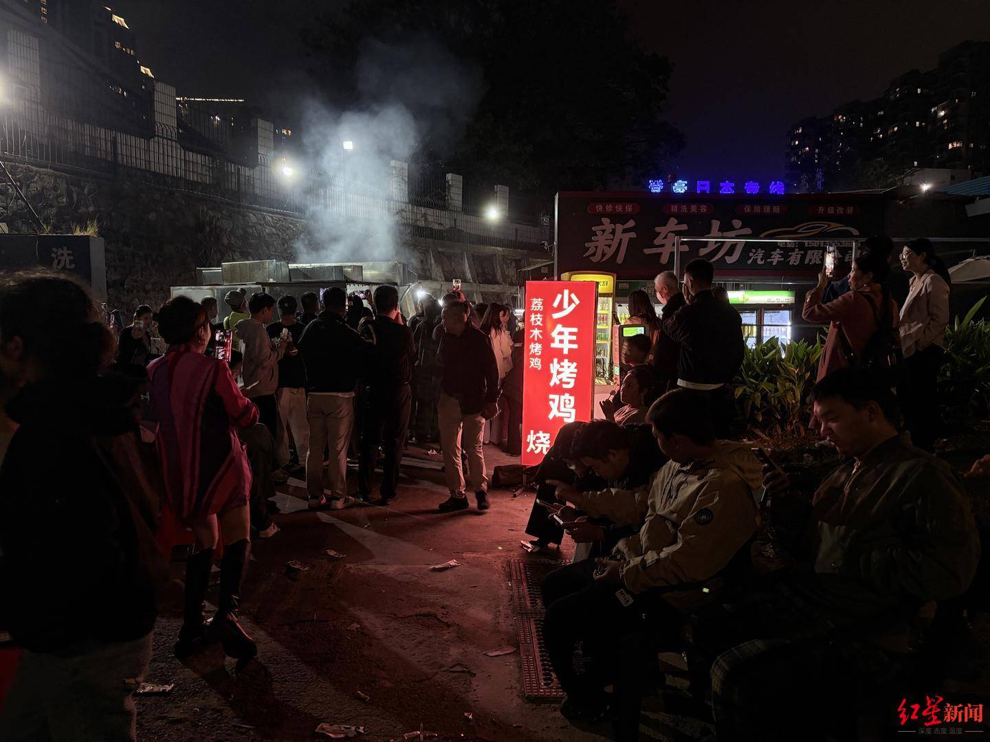 在深圳一个热闹的烤鸡摊前,16岁的小陈正弯腰照看炭火,烤架上的鸡油脂滴落,溅起细碎火花。红星新闻记者抵达时,摊位前的队伍蜿蜒至街角,这是烤鸡摊生意爆火后小陈的日常,也是数月前他无法想象的画面。