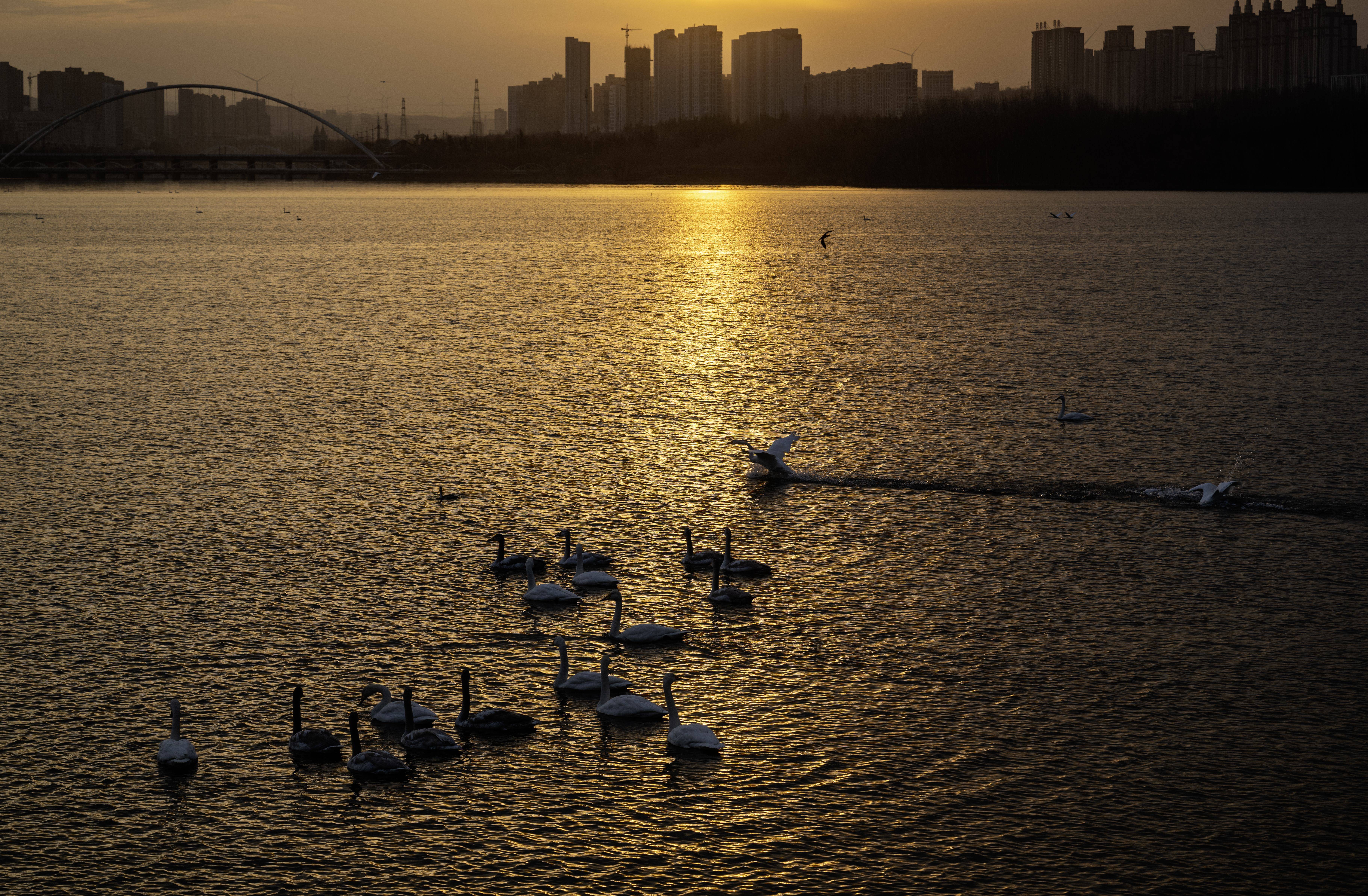 12月20日在河南省三门峡市天鹅湾拍摄的天鹅。 新华社发(麻翛然摄)