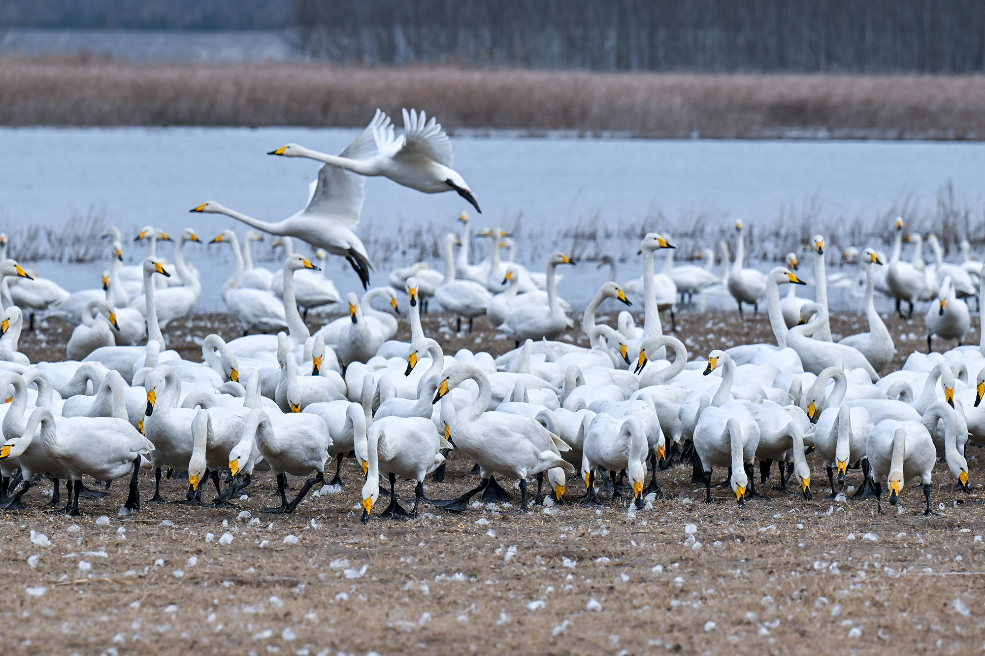12月21日在河南省三门峡市黄河湿地拍摄的白天鹅。 新华社发(段二平摄)