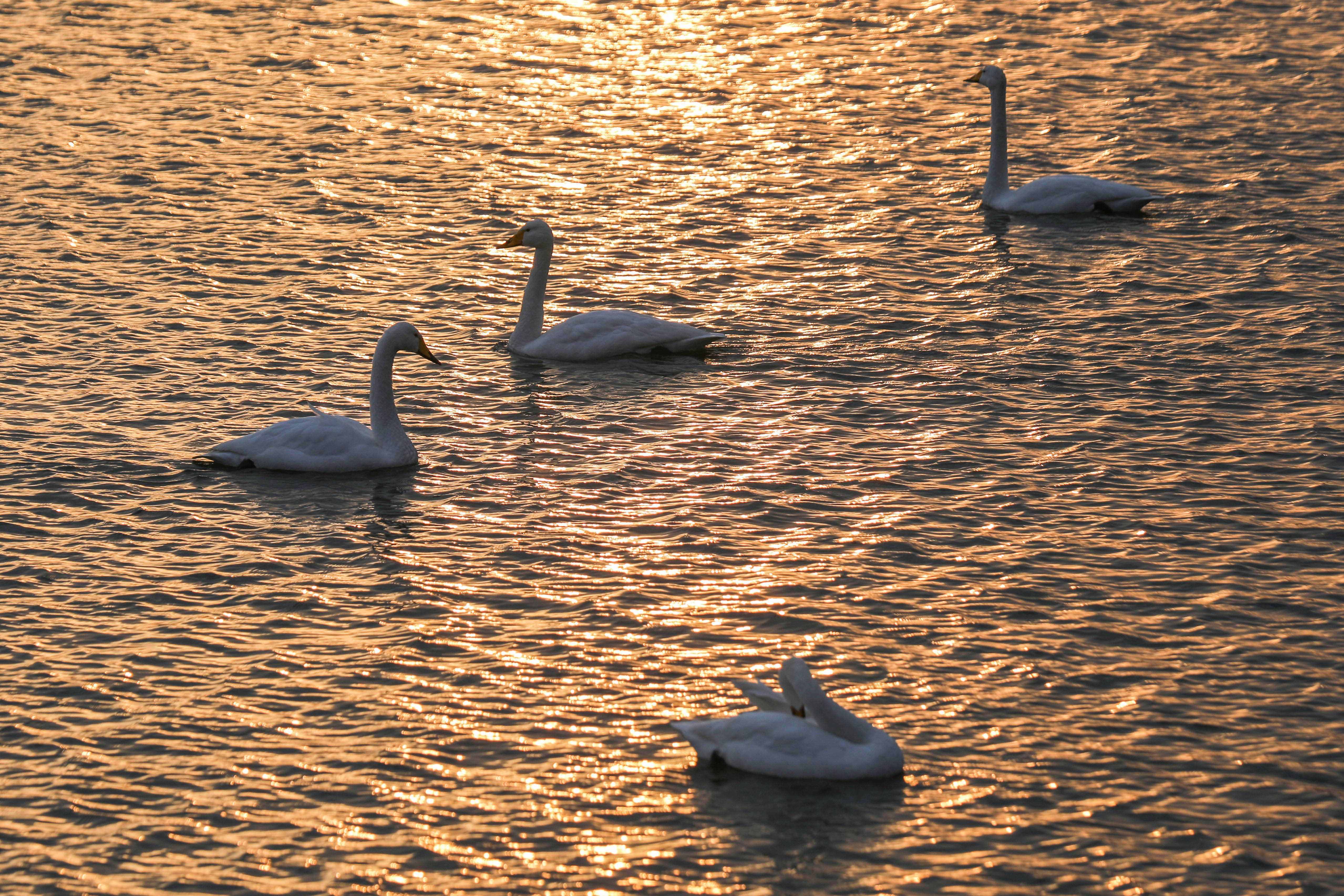 12月21日在河南省三门峡市天鹅湖国家城市湿地公园拍摄的白天鹅。 新华社发(王高超摄)