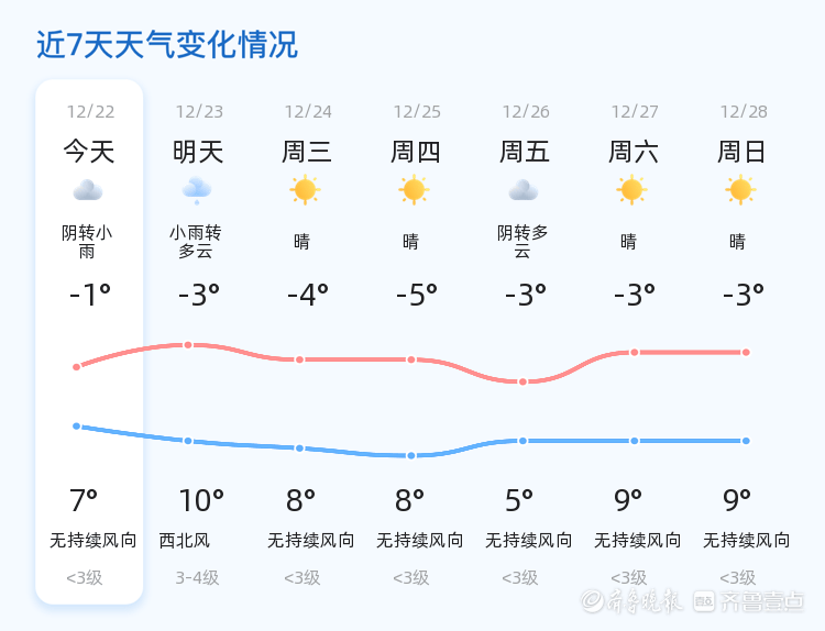 未来三天,枣庄市天气将以晴间多云为主,气温波动明显。周三至周四,天气晴朗,气温在-4℃至8℃之间,风力较小。周五天气转为阴转多云,气温略有下降,但整体较为稳定。市民需根据天气变化及时调整衣物,尤其是早晨和夜间,气温较低,注意保暖。