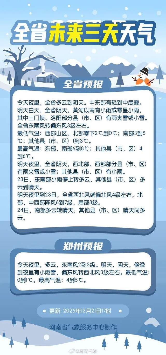 刚度过1961年以来历史同期第二暖的大雪节气,河南在今日(12月22日)迎来了气温的低点。受冷空气和暖湿气流共同影响,全省大部分地区最高气温将不足5℃,体感从前期的偏暖转为寒冷。