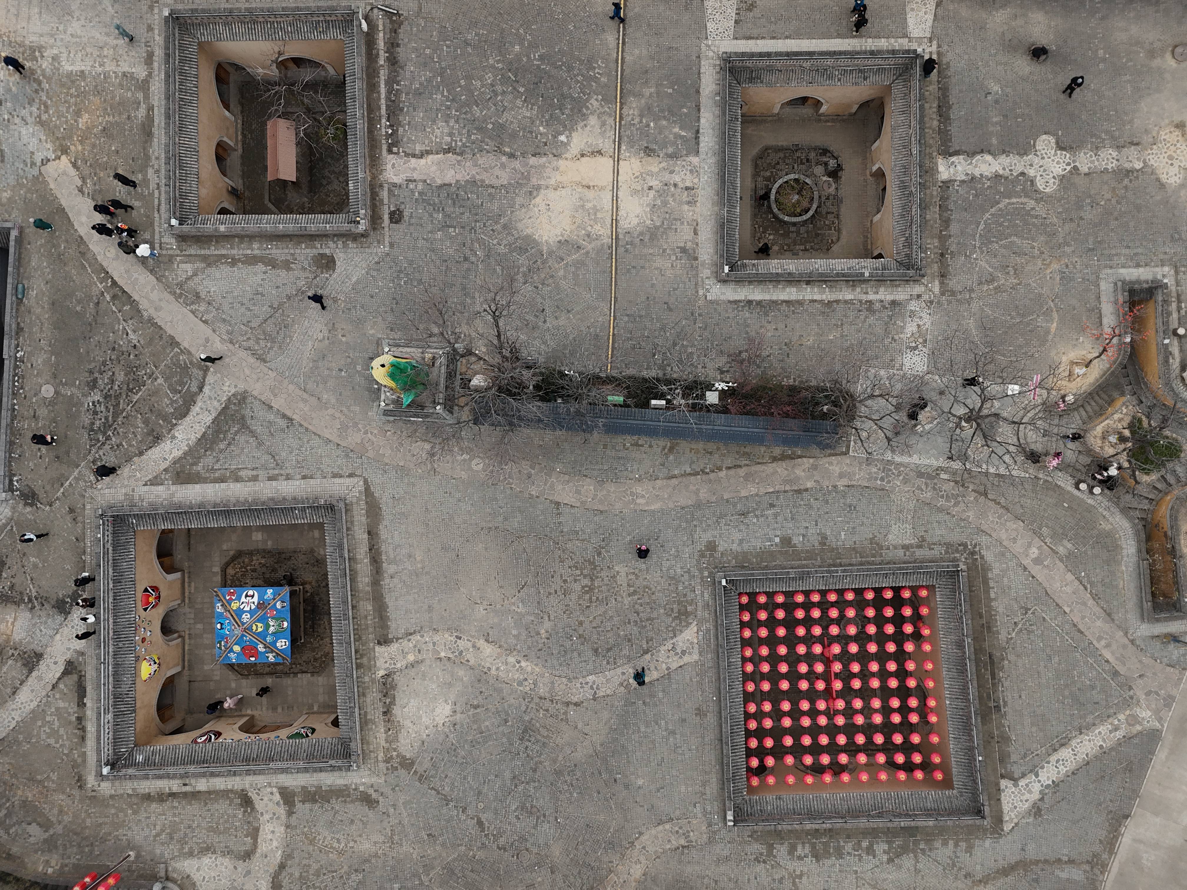 12月21日,游客在河南省三门峡市陕州区张汴乡北营村地坑院参观(无人机照片)。 新华社发(徐宏星摄)