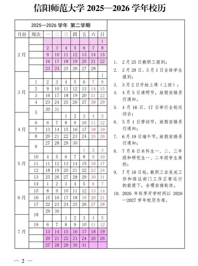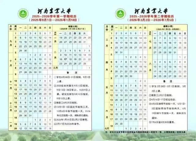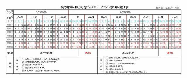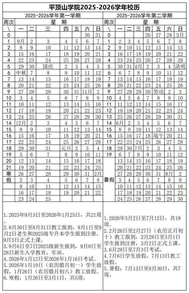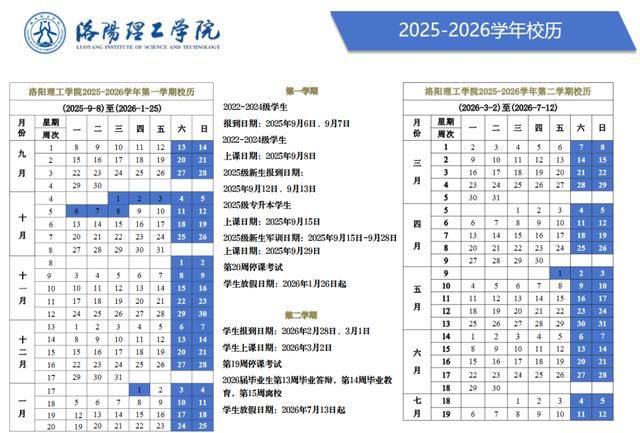 2026年1月12日学生离校;2月25日教职工报到;2月28日、3月1日全体学生报到;3月2日开始上课(上班)。