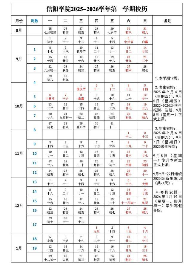 寒假安排:2026年1月19日(星期一,腊月初一)学生寒假开始。