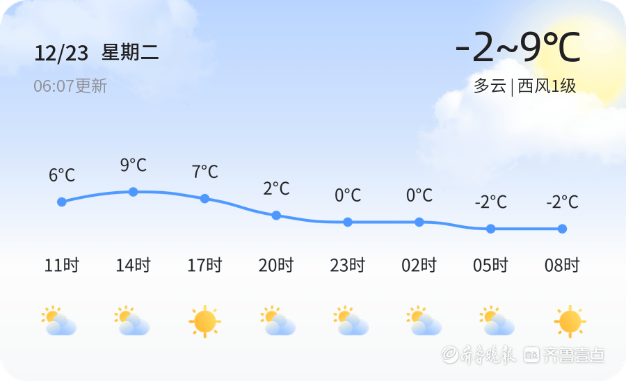 今日是12月23日,星期二,农历十一月初四。菏泽市迎来多云天气,气温在-2℃至9℃之间,西风1级,空气湿度较高,PM2.5值为55,空气质量良好。各区县天气情况基本一致,整体天气平稳,适合市民户外活动。