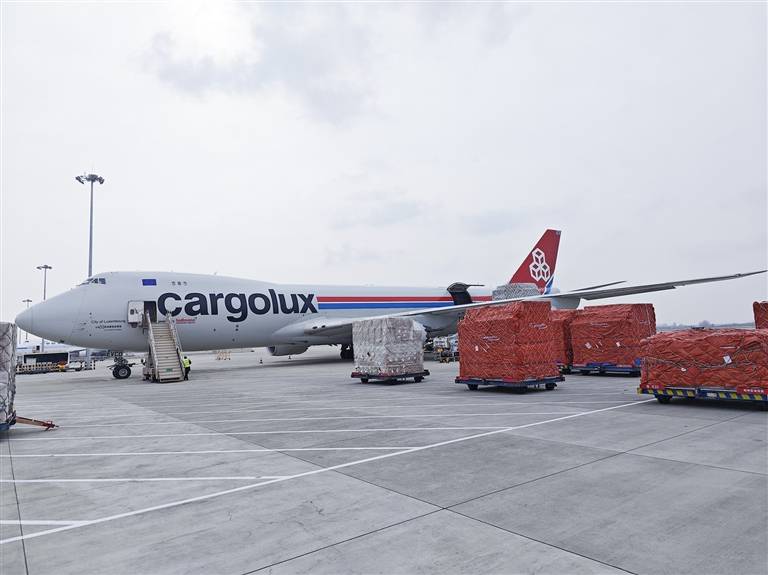 卢森堡货航货机。 河南日报社全媒体记者 徐聪 摄