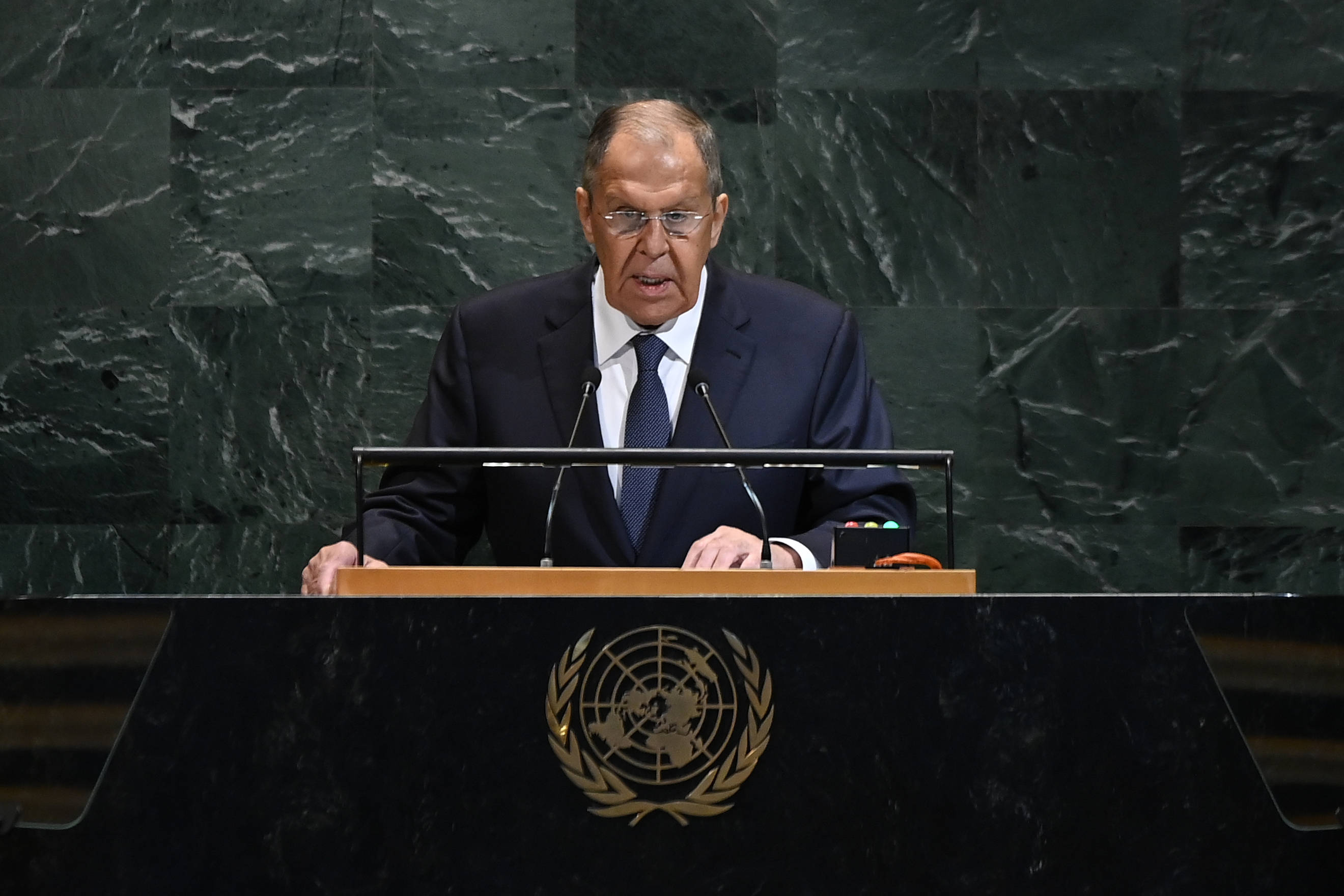 9月27日,在位于纽约的联合国总部,俄罗斯外交部长拉夫罗夫在第80届联合国大会一般性辩论上发言。新华社记者 李睿 摄