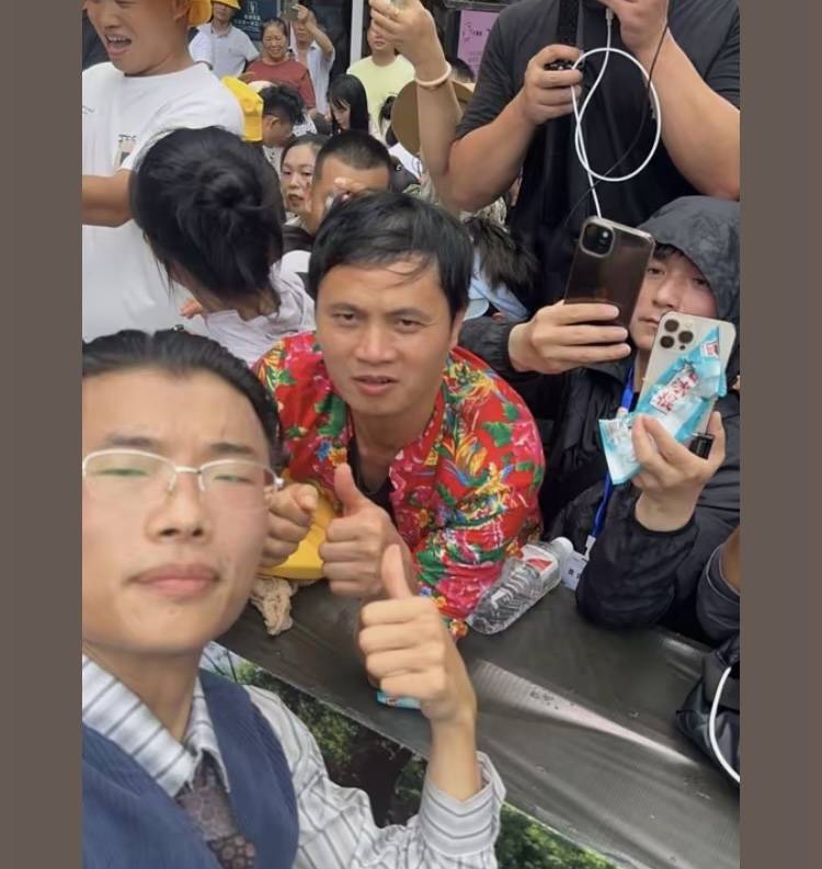当然,在现场抢占一个好位置也很重要。小江西说,每次郭有才直播结束,会有粉丝合影环节,郭有才正后方的位置就是C位,努力从他肩膀那块探出头来,就有曝光了。早期,一位个子矮小的湖南大姐经常能抢占C位,每次出现,她一定会带一把不锈钢的高凳子,“把凳子一放,穿个花衣服,往上一站,就她最高了。”