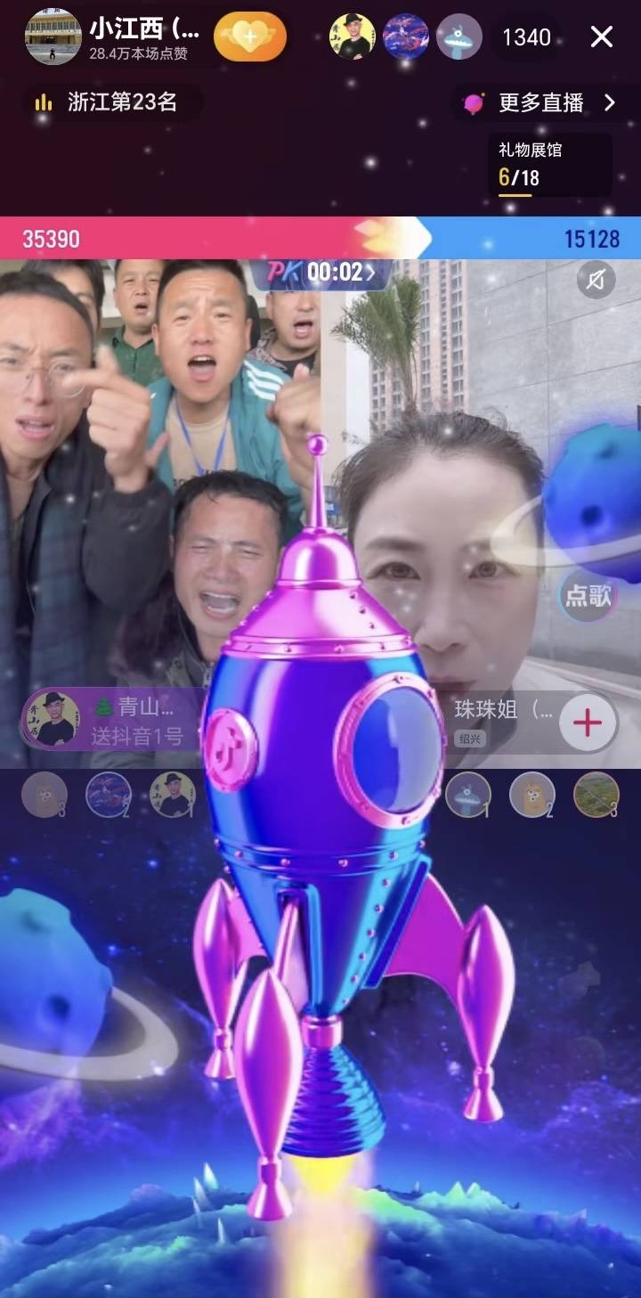 流量高峰时期,小江西收到的火箭打赏道具。讲述者供图