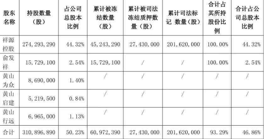 在债务风波和工作组进驻的同时,祥源系核心股权已被大量冻结。12月16日,交建股份率先披露,控股股东祥源控股及实控人俞发祥所持公司股份已被司法冻结、轮候冻结及司法标记。